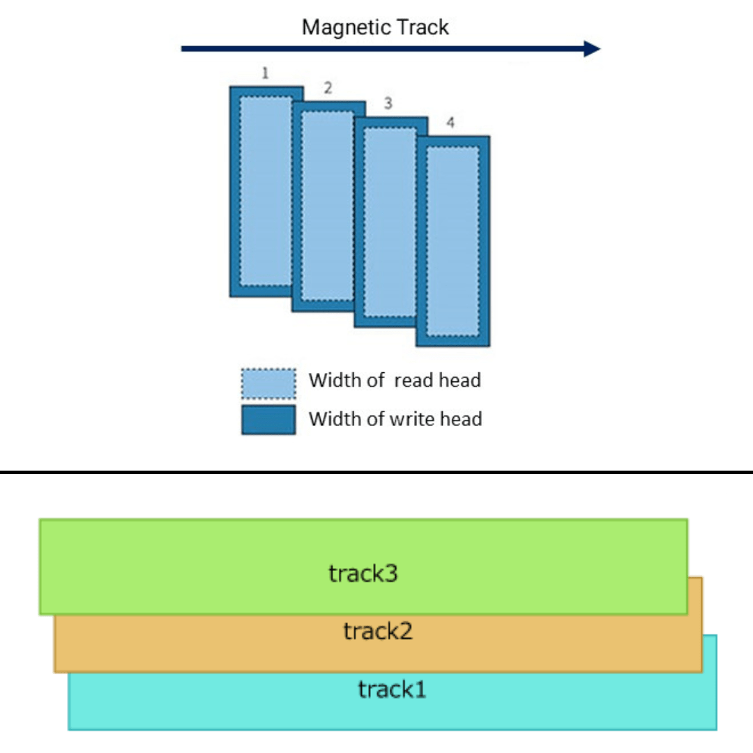 در روش Shingled Magnetic Recording، دادهها به صورت همپوشانی در کنار هم ذخیره میشوند. این نوآوری باعث میشود که ظرفیت ذخیرهسازی بدون نیاز به تغییر اندازه فیزیکی دیسک افزایش یابد.