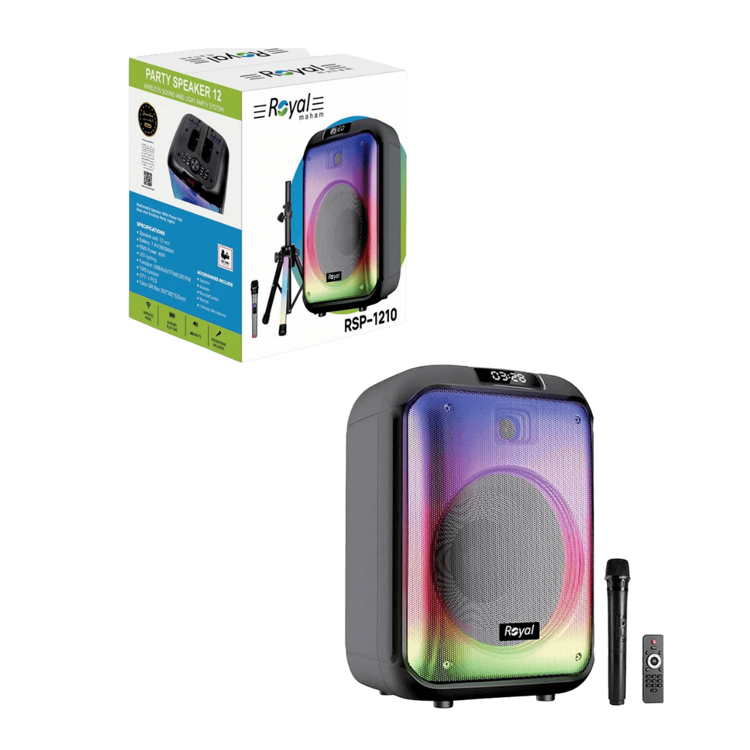 اسپیکر پارتی باکس Royal RSP-1210 با صدای پرقدرت و نورپردازی LED، تجربه موسیقی را در مهمانی‌ها و سفرها متحول می‌کند. بلوتوث 5.0 و باتری 8 ساعته.