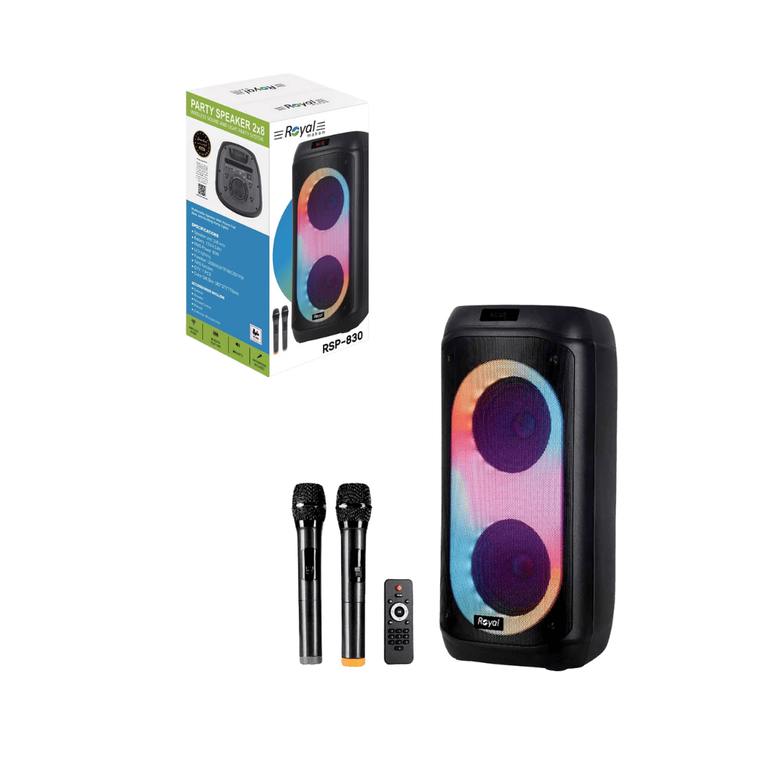 اسپیکر پارتی باکس Royal RSP-830 نسخه قدیمی 1050 با صدای 60 واتی و نورپردازی LED، همراه ایده‌آل مهمانی‌هاست. اتصال آسان، باتری داخلی و قابلیت میکروفون و گیتار.