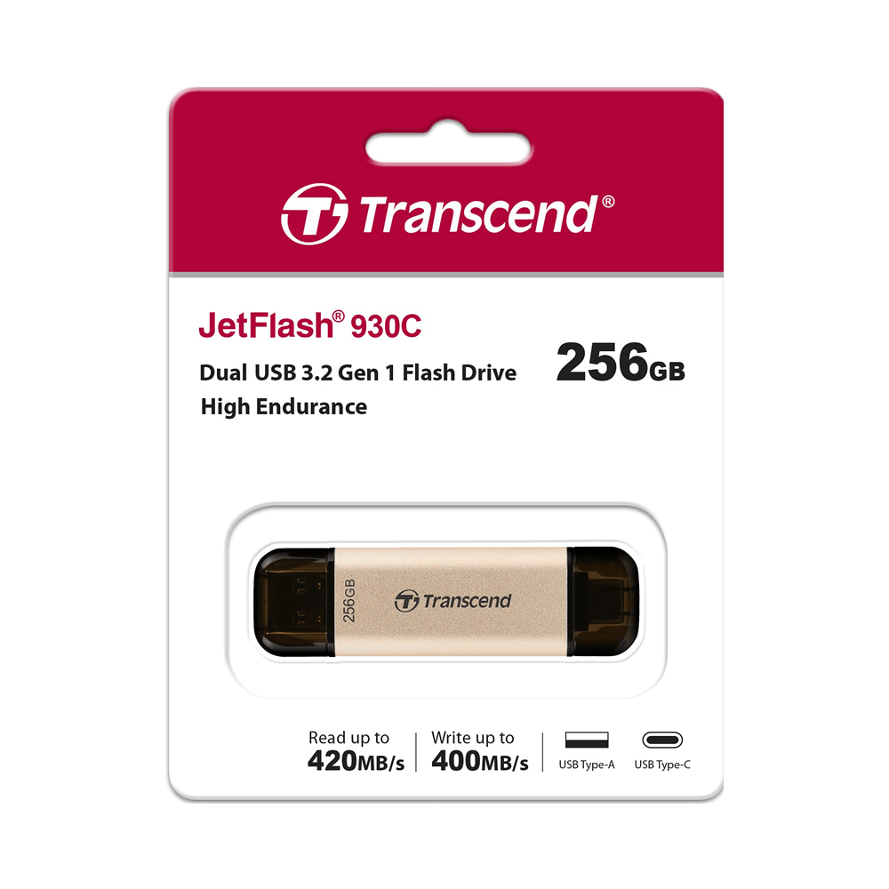 فلش مموری Transcend JetFlash 930C با ظرفیت ۲۵۶ گیگابایت، یک دستگاه ذخیرهسازی قابل حمل با دو کانکتور USB Type-A و USB Type-C است که امکان اتصال به انواع دستگاهها از جمله رایانههای شخصی، لپتاپها، گوشیهای هوشمند و کنسولهای بازی را فراهم میکند.