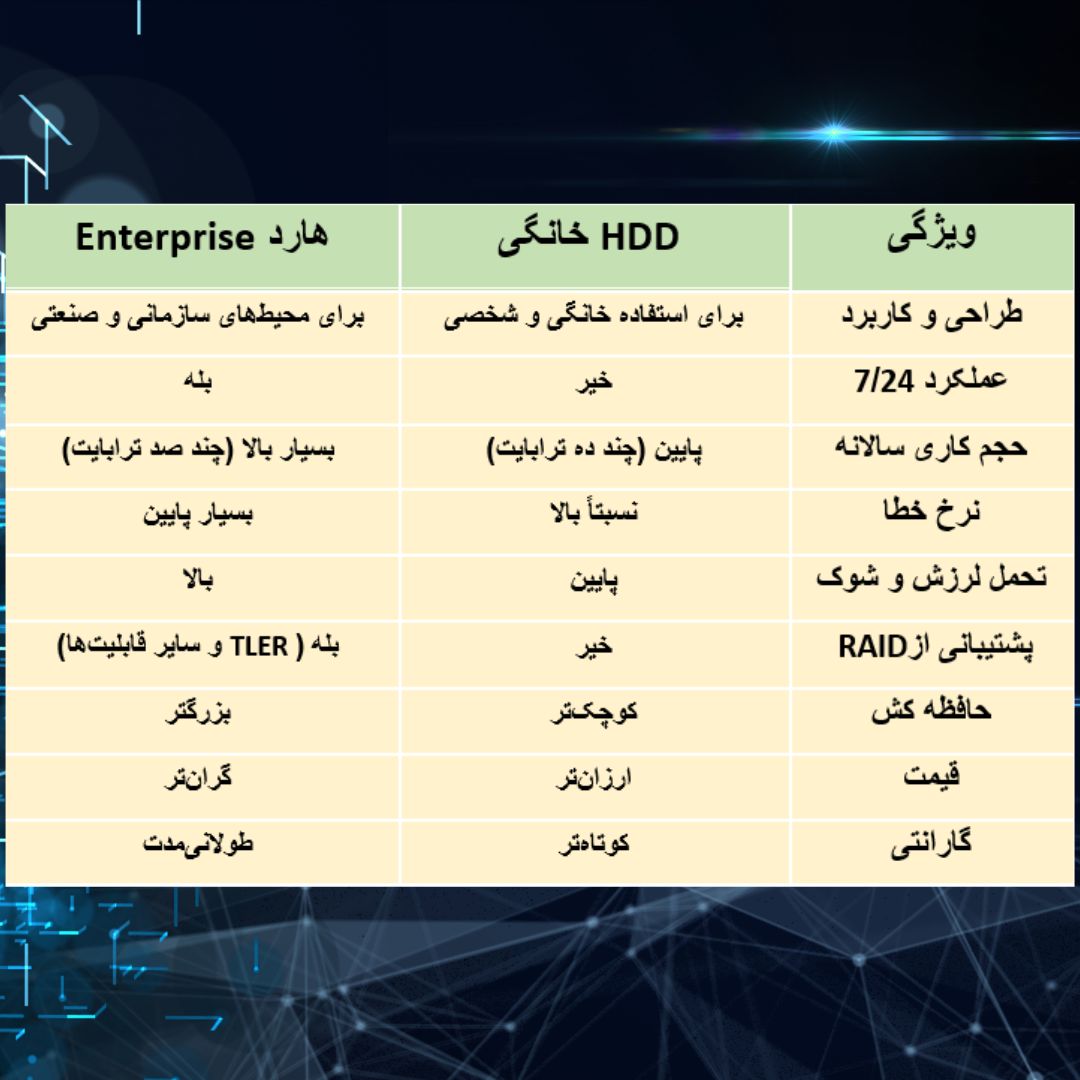 ویژگی‌های هارد Enterprise و HDDهای خانگی